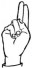 На ћирилици написано ЕВГЕНИЈЕ ОБРАДОВИЋ састоји се из 17 слова [?]. Исписано ћириличном једноручном азбуком за глувонеме:
